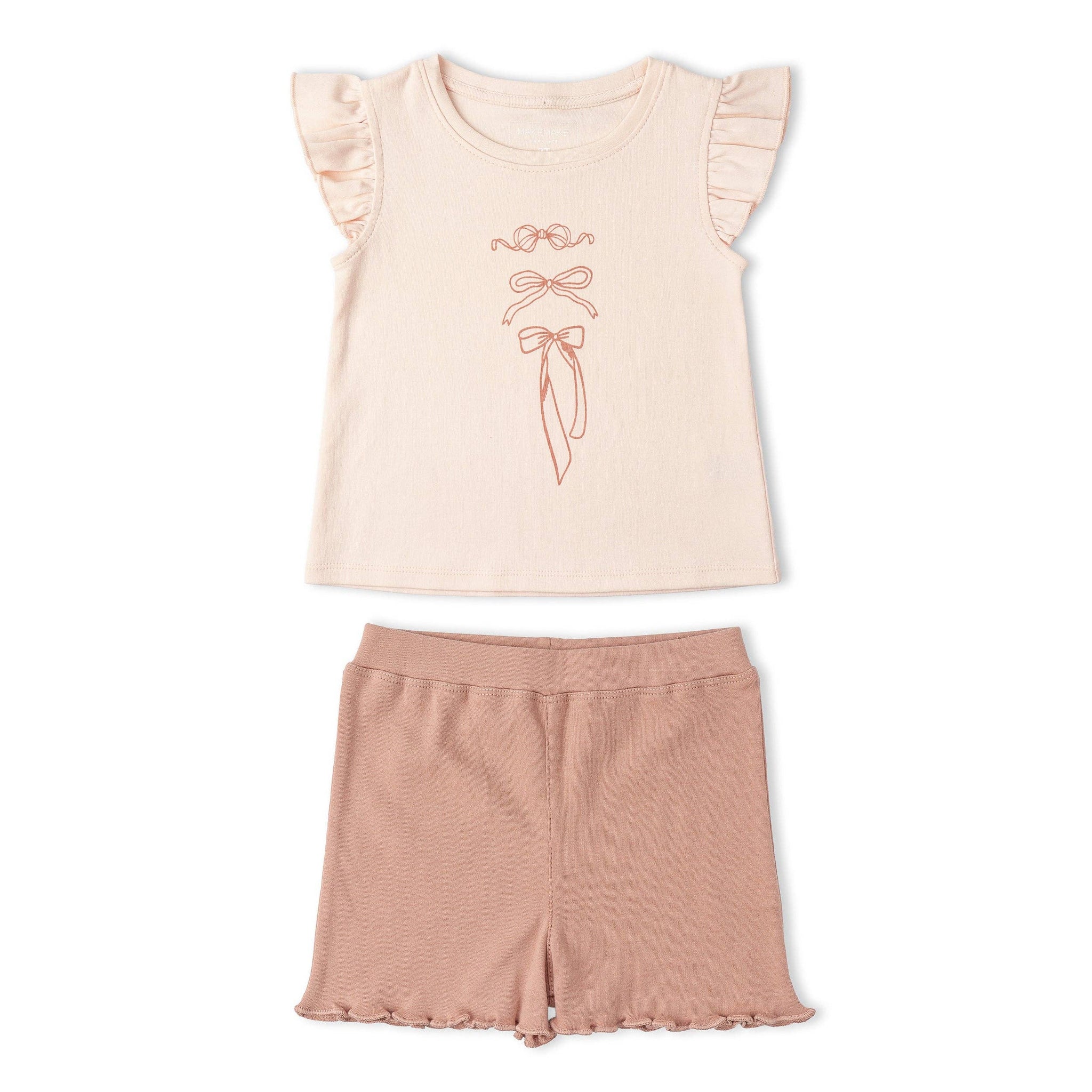 Dress your little one in the delightful Organic Sleeveless Flutter Top & Shorts Set - Bows from Makemake Organics. This set, designed for comfort and style, features a sleeveless top and shorts adorned with adorable bows. Made from the finest natural materials, it exemplifies our commitment to creating exceptional, sustainable products. Each piece is GOTS certified, ensuring the highest standards in organic textiles. When you choose Makemake Organics, you're choosing not only beautiful clothing, but also a brand dedicated to positive impact and sustainable practices.