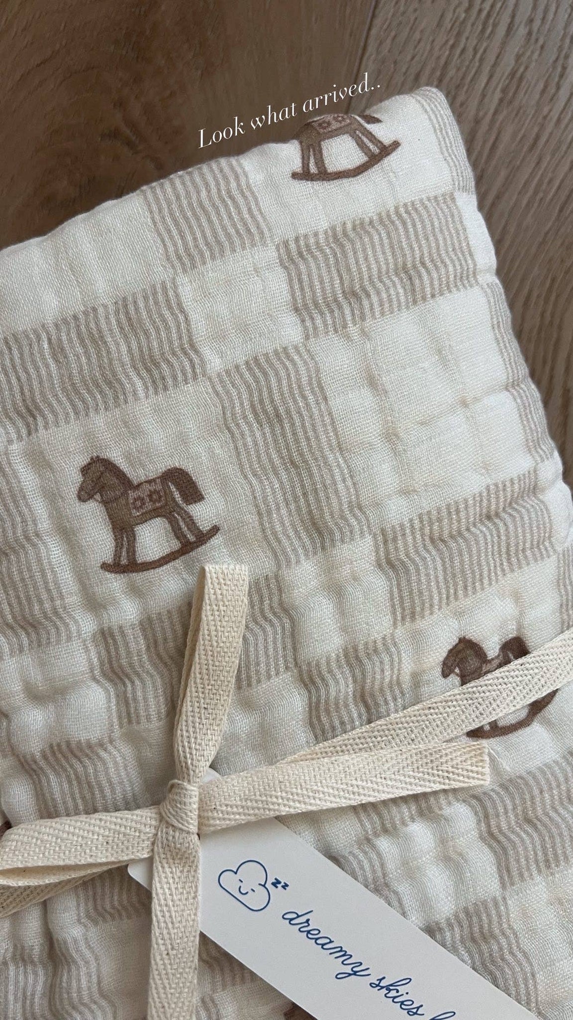 Never leave your little one unattended with blankets because of risk of suffocation. Keep blanket away from velcro and sharp objects that can snag the delicate gauze material. We are not responsible for damages to the fabric.